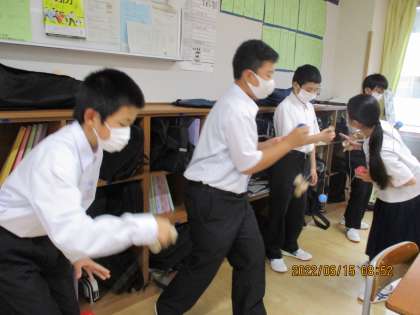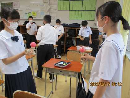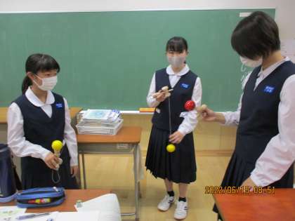 今年度初めてのけん玉タイムです。みんなで輪になって、または一列に並んで、けん玉に熱中しました。「もう終わり〜?」と残念がる声も聞こえました。