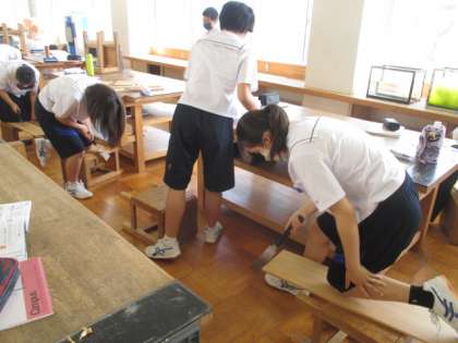 6月22日(水)1年 授業の様子 公開日 2022/06/22 更新日 2022/06/22 学校生活 3組技術 木材加工でのこぎりを扱っていました。暑い教室の中ですが、木材を押さえ合ったり、話し合ったりしながら集中して取り組んでいました。