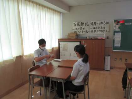 今週は教育相談が行われています。各教室で担任と学習や生活等のことについて面談していました。