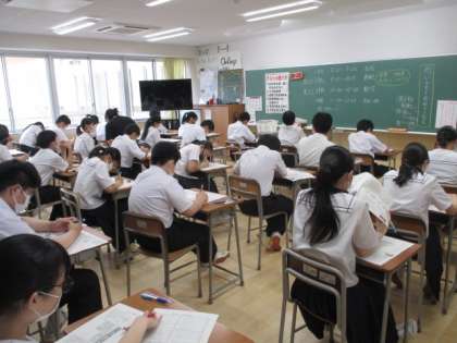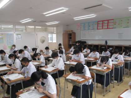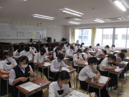6月27日(月)2年 授業の様子 公開日 2022/06/27 更新日 2022/06/27 学校生活 今日から1学期の期末考査が始まりました。暑い日が続いていますが、教室の中は快適、集中して問題を解いていました。