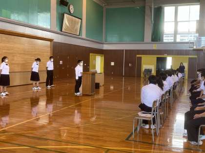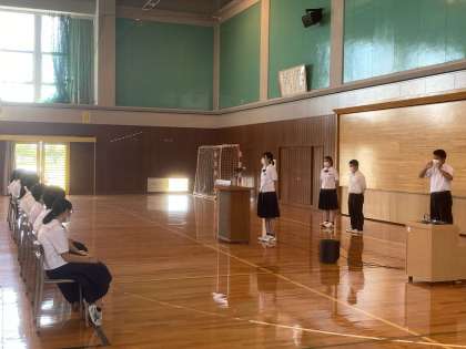 7月1日(金)3年 学年集会の様子 公開日 2022/07/01 更新日 2022/07/01 学校生活 昨日、3年生は学年集会を開き、9月下旬の運動会役員を選出する活動を行いました。今回は運動会全体の運営に携わる実行委員に立候補した生徒が演説し、クラスごとに投票を行いました。暑い中、生徒は立候補者の熱い思いに真剣に耳に傾けていました。今後は、団リーダーやデコレーションリーダーの立候補を募り、役員が1学期中に決まる見通しです。