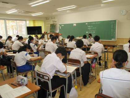 4時間目に、合唱コンクールのクラス曲の候補を聴きました。8曲の中から、2学期の生徒活動発表会で歌う合唱曲を選んでいました。
