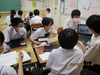今日の総合的な学習の時間は、「富山のよさ調べ」の班内発表会でした。