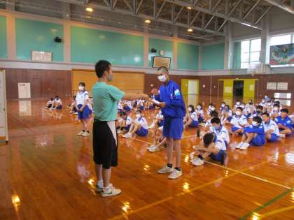 7月21日(木) 2学年 学年レクリエーション 公開日 2022/07/22 更新日 2022/07/22 2年生 昨日、体育館で学年レクリエーションを行いました。 ドッジボールでは、各クラス男女別のチームに分かれて戦いました。 熱戦が繰り広げられましたが、試合では、「ナイス!」や「惜しい!」「ドンマイ」などの素敵な声かけも聞こえてきました。