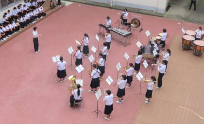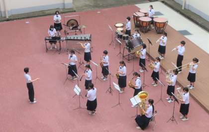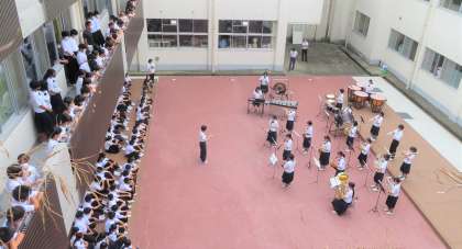7月21日(木) 吹奏楽部による演奏会の様子・その2 公開日 2022/07/22 更新日 2022/07/22 学校生活 3階からの様子です。中部日本吹奏楽コンクール富山県大会もステキな演奏を楽しみにしています!!