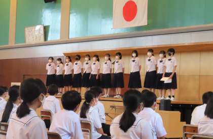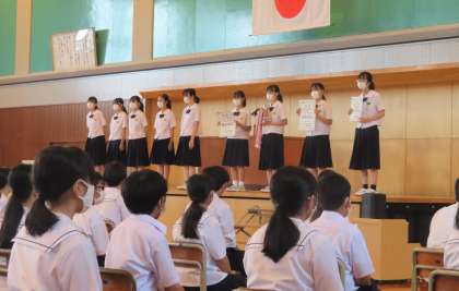 終業式の前に受賞伝達式を行いました。たくさんの活躍があった1学期でした!!