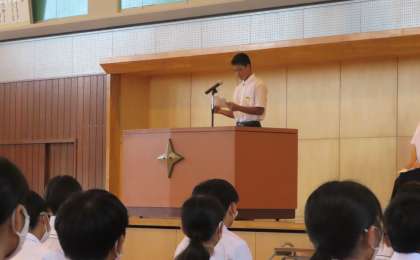 各学年の代表者が意見発表を行いました。1学期を振り返って、自分の思いを堂々と話す姿はかっこよかったです!!