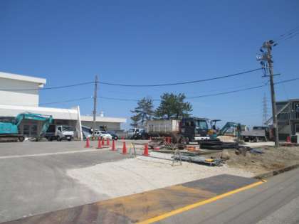 7月下旬から解体工事が始まりました。旧生徒玄関の木々の伐採、旧自転車置き場の撤去、仮囲いの設置がされています。工事車両の出入りが多くなっています。十分に注意しましょう。