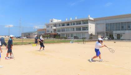 8月8日(月) 部活動の様子 その2 公開日 2022/08/08 更新日 2022/08/08 学校生活 テニスコートでは、ソフトテニス部が活動しています。暑い中の活動ですが、それぞれが目的をもって練習しています!!