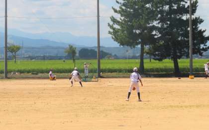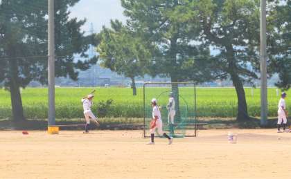 野球部がグラウンドで活動しています。ねらい、目的をもって練習に取り組んでいます!!