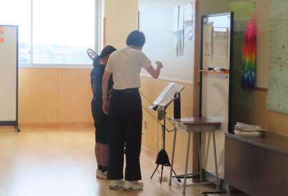 校舎内では吹奏楽部が活動しています。キレイな音色が響き渡っています!!
