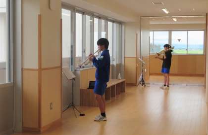 校舎内では吹奏楽部が活動しています。キレイな音色が響き渡っています!!