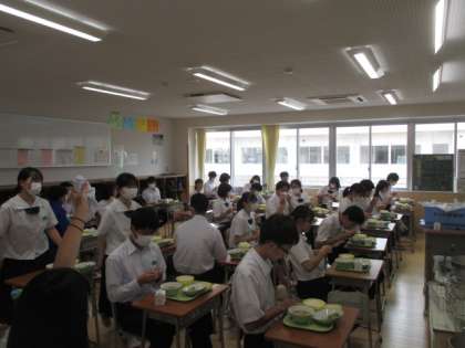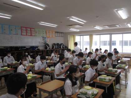 9月2日(金)給食時の様子 公開日 2022/09/02 更新日 2022/09/02 学校生活 2学期が始まり1週間になりました。給食の様子も1学期同様、前を向いて静かに食べていました。また、盛りつけの量を調整しながら完食していました。