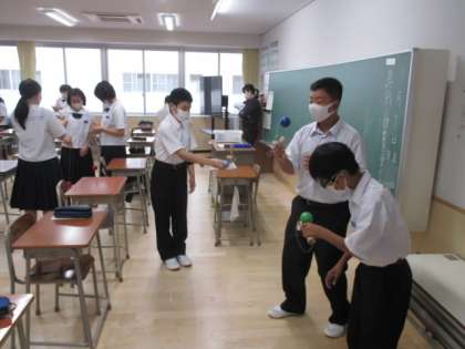 出欠確認後、2学期初めての「けん玉TIME」。仲間と和気藹々と取り組んでいました。