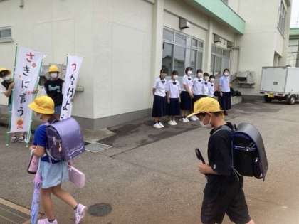 あいさつ運動2日目。倉垣小学校での様子です。さわやかなあいさつを交わしていました。