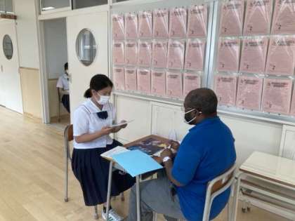 9月8日(木) 3年授業の様子 公開日 2022/09/08 更新日 2022/09/08 学校生活 英語の授業では、リーディングテストを行いました。教科書の物語文の指定の部分を、制限時間内に登場人物になりきって読むことが求められる中、1人1人が自分で設定した目標を達成し、授業や自宅での練習の成果を発揮しようと、奮闘していました。