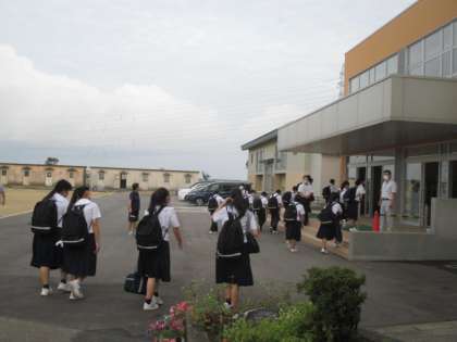 9月13日(火)登校時の様子 公開日 2022/09/13 更新日 2022/09/13 学校生活 曇り空の朝となりました。新人大会が近いこともあり、持ち物が多くなっているようです。登下校時の自転車の運転など十分注意しましょう。