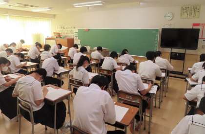 5,6限に第3回実力テスト(社,英)を行いました。明日は、国,理,数の3教科です。最後まで粘り強く頑張りましょう!!