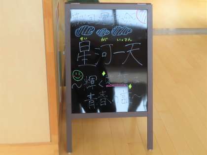 校舎内の掲示物も少しずつ運動会モードに変わっていることに気付いていますか?来週、9月20日(火)の5限に運動会結団式を行います。今日、運動会実行委員長からの放送にもあったように、「星河一天(せいがいってん)〜輝く笑顔は青春の証〜」のスローガンのように、笑顔が輝く運動会にしましょう!!