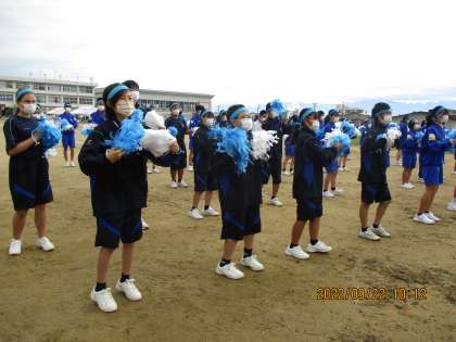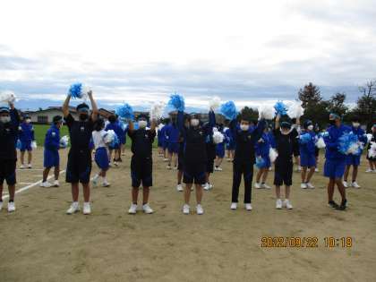 今日は、初めてポンポンを持って踊りました。なかなか様になってます。