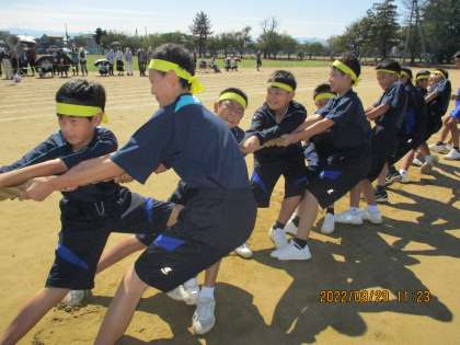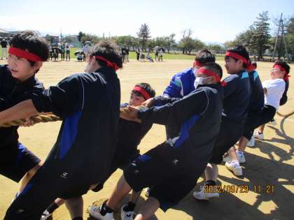 綱引きは、男子は黒潮、女子は旭光が優勝しました。でも、どの団も、力一杯綱を引いていました。