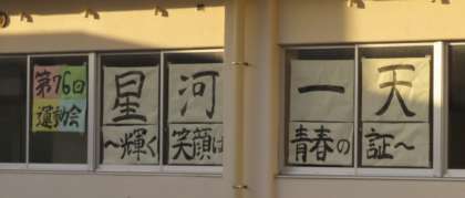 第76回運動会は大成功でした。スローガン「星河一天〜輝く笑顔は青春の証〜」のスローガンのように、たくさんの笑顔が輝く運動会でした。
