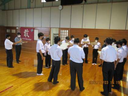 最初は、パート練習です。それぞれのパートの音が正しくとれるように丁寧に練習に取り組んでいます。