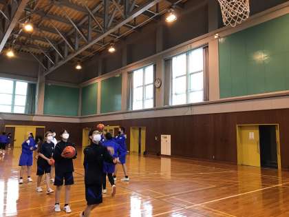 10月5日(水) 1学年全校レク(2) 公開日 2022/10/05 更新日 2022/10/05 1年生 生徒達は、縦割りグループを作り、校内で様々なゲームに挑戦しました。これは、体育館で行われたフリースロー大会です。