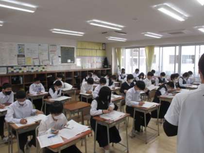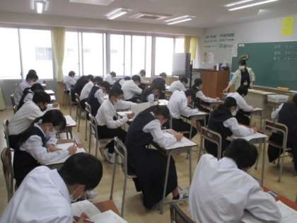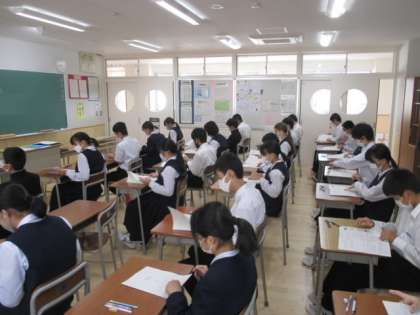 今日は、2学期中間考査1日目。社会、理科、数学の問題に真剣に取り組んでいました。