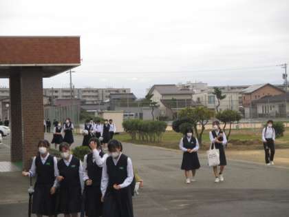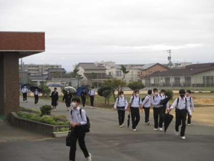 10月12日(水)登校時の様子 公開日 2022/10/12 更新日 2022/10/12 学校生活 時折小雨がぱらつく朝となりました。今日は中間考査2日目。テストや行事があると、全体的に登校時間が早くなるようです。