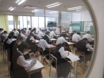 10月12日(水)授業の様子 公開日 2022/10/12 更新日 2022/10/12 学校生活 今日は中間考査2日目。チャイムと同時に一斉に問題に取り組んでいました。1年と2年では、英語のリスニングテストが行われていました。