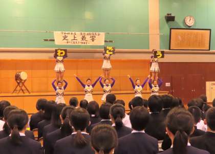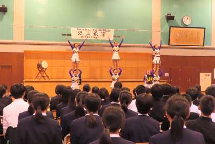 PTA主催講演会として、富山商業高校の応援団・チアリーダーによるパフォーマンスがありました。