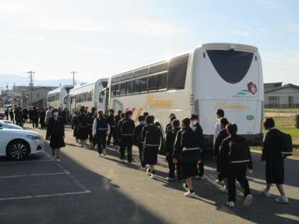 予定より少し早く、氷見方面、五箇山方面、立山方面の3つのコースに分かれ出発しました。