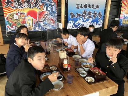 昼食タイムです。きときとの海鮮チラシは止まらない美味しさです。