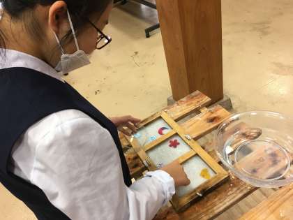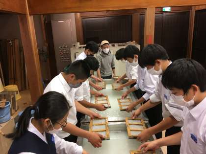 五箇山コースは、和紙づくり体験に挑戦しました。