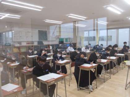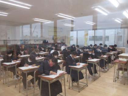 今日、明日と中教研学力調査が行われます。今日は、国語、理科、英語でした。 画像は1年の様子です。