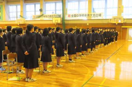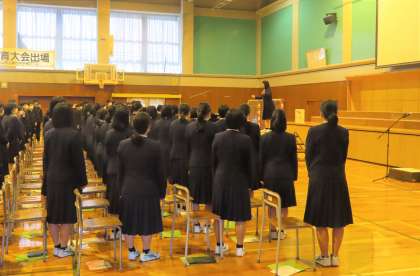 3年生の合唱コンクールを行いました。まずは、全校合唱「My Own Road」です。