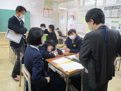 11月17日(木) 2学年 スクールミーティング 公開日 2022/11/17 更新日 2022/11/17 2年生 5,6限の時間に「スクールミーティング」を行いました。 市役所の方から富山市の政策を聴きました。そして、政策に関する疑問に思ったこと等を質問し、富山市がよりよくなる方法はないかを考えました。 こども家庭部 「子育て支援」の様子です