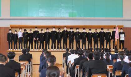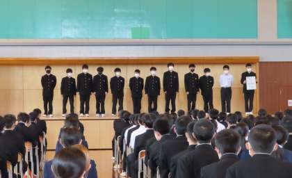 11月24日(木) 受賞伝達式・その1 公開日 2022/11/24 更新日 2022/11/24 学校生活 受賞伝達式を行いました。 (写真 上:野球部、中:ハンドボール部男子、下:ハンドボール部女子)