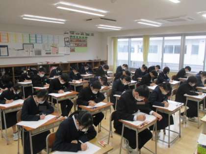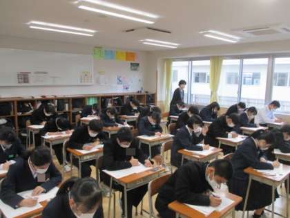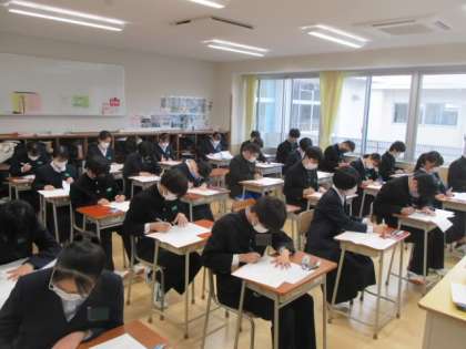 12月2日(金)3年 授業の様子 公開日 2022/12/02 更新日 2022/12/02 学校生活 市学力調査の2日目。英語と数学の問題に取り組んでいました。チャイムがなると同時に素早く問題を解き始めていました。