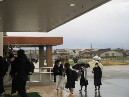 12月15日(木)朝の様子 公開日 2022/12/15 更新日 2022/12/15 学校生活 時折小雨の寒い朝となりました。来週初めまで低めの気温、雪の予報も出ています。防寒衣を着用して登校する生徒が多くなりました。手袋も着用するなどして安全な登校をしましょう。