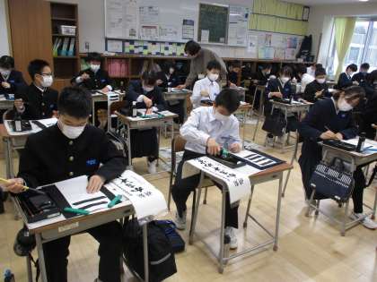 国語は、1月10日の書き初め大会に向けて、習字の授業が始まりました。みんな真剣です。