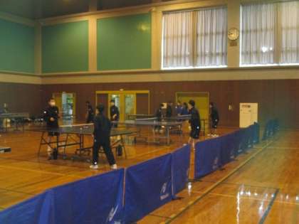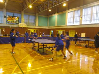 卓球では、基本練習をした後試合形式での実戦練習を行っていました。