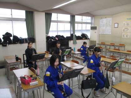 吹奏楽部では、アンサンブルコンテストに向けパート毎に練習に取り組んでいました。