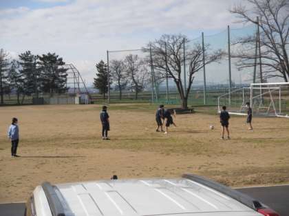 サッカー部は、乾いたグラウンドでパス回しの練習をしていました。
