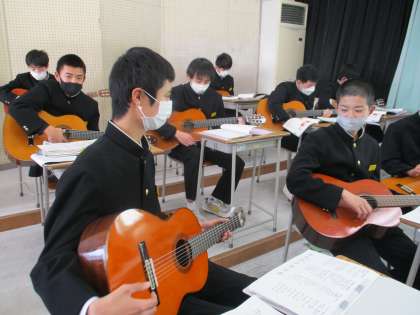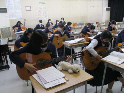 1月20日(金) 2学年 授業の様子 2 公開日 2023/01/20 更新日 2023/01/20 2年生 音楽の授業で、男女に分かれてギターのテストを行いました。 待っている間は歌の練習をしていました。