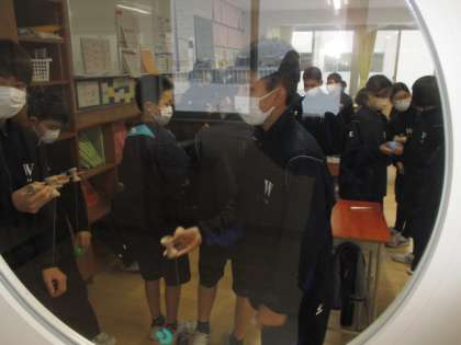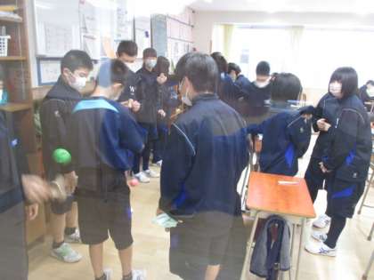 出欠確認後の「けん玉TIME」。技の成功確率を高めたり、新しい技に挑戦したりと取り組んでいました。
