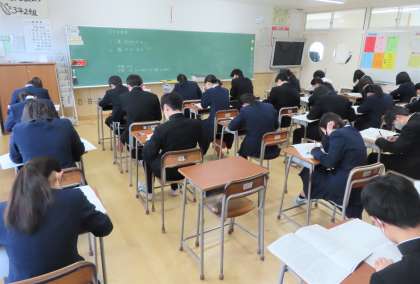 2月16日(木) 3年 授業の様子 公開日 2023/02/17 更新日 2023/02/17 3年生 学年末考査2日目が終わりました。1つ1つのテストに真剣に向き合っている様子がかっこよかったです。答案が返却されたら見直しをし、次につなげましょう!