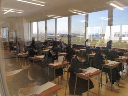 学年末考査の初日は、保体、音楽、国語の3教科でした。合図の後、素早く問題に取り組んでいました。