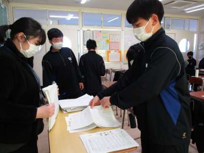 3月6日(月) 1学年よりお知らせ 公開日 2023/03/07 更新日 2023/03/07 1年生 今年度最後の素点通知表を配布しました。 ファイルは来年度も継続して使用するため、中身をすべて抜いて学校へ持たせて下さい。よろしくお願いいたします。